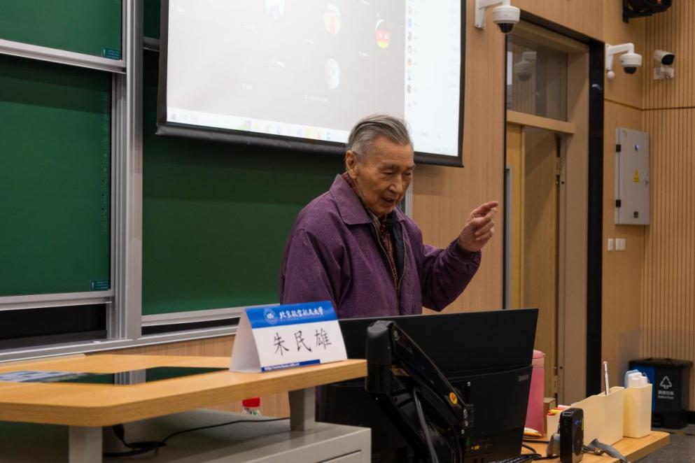 讲座伊始,89岁高龄的朱民雄教授与同学们分享了林士谔先生的生平事迹。林士谔先生出生于军人家庭,从小埋下了爱国主义的种子,在麻省理工学院获得硕、博士学位后,林士谔先生拒绝美国高薪挽留,于1939年回国抗日,1952年参加北航的创建工作。林士谔先生是飞机设备系奠基人之一,生前为北航一级教授,同时他还是信息技术专家、国际科学泰斗、航空教育大师,他于1938年在美国发表的关于解高阶代数方程的论文中创造性地提出了高阶方程劈因解根法,被国际数学界命名为“林士谔法”,并获得国际数学界的高度评价。