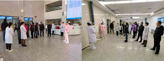 11月18日上午,在北航挂职中阳县副县长郭伟丰和县卫健局局长王学彦的带领下,校医院一行首先赴中阳县人民医院新院区调研参观,新建成的县人民医院就医环境舒适、医疗设备一流、服务功能完善,与八年前参观的县人民医院原址有着翻天覆地的变化,大家深感振奋的同时,收获了许多现代化医院建设经验。