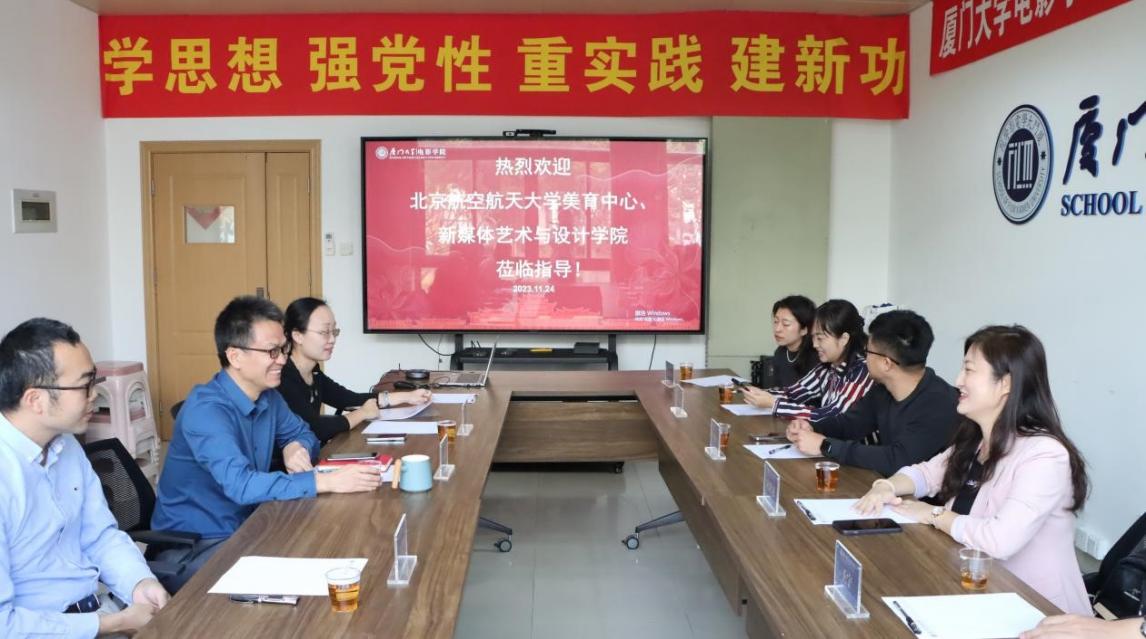 北航新闻网11月29日电(通讯员 高蕊)为把握科艺融合的发展大趋势,创新人才培养模式,2023年11月24日,新媒体艺术与设计学院和美育中心共7名教师受邀到厦门大学电影学院开展座谈交流,会议在厦门大学海韵园行政楼C416举办。