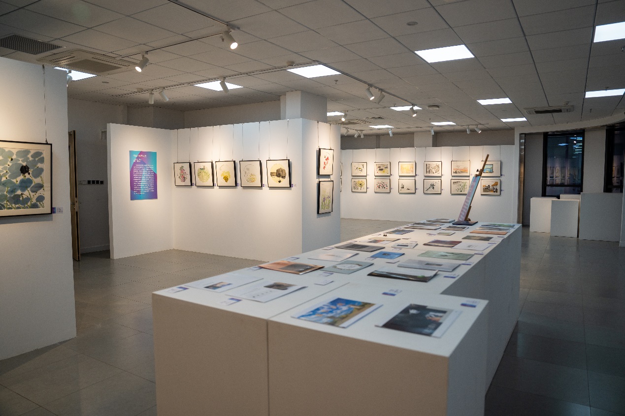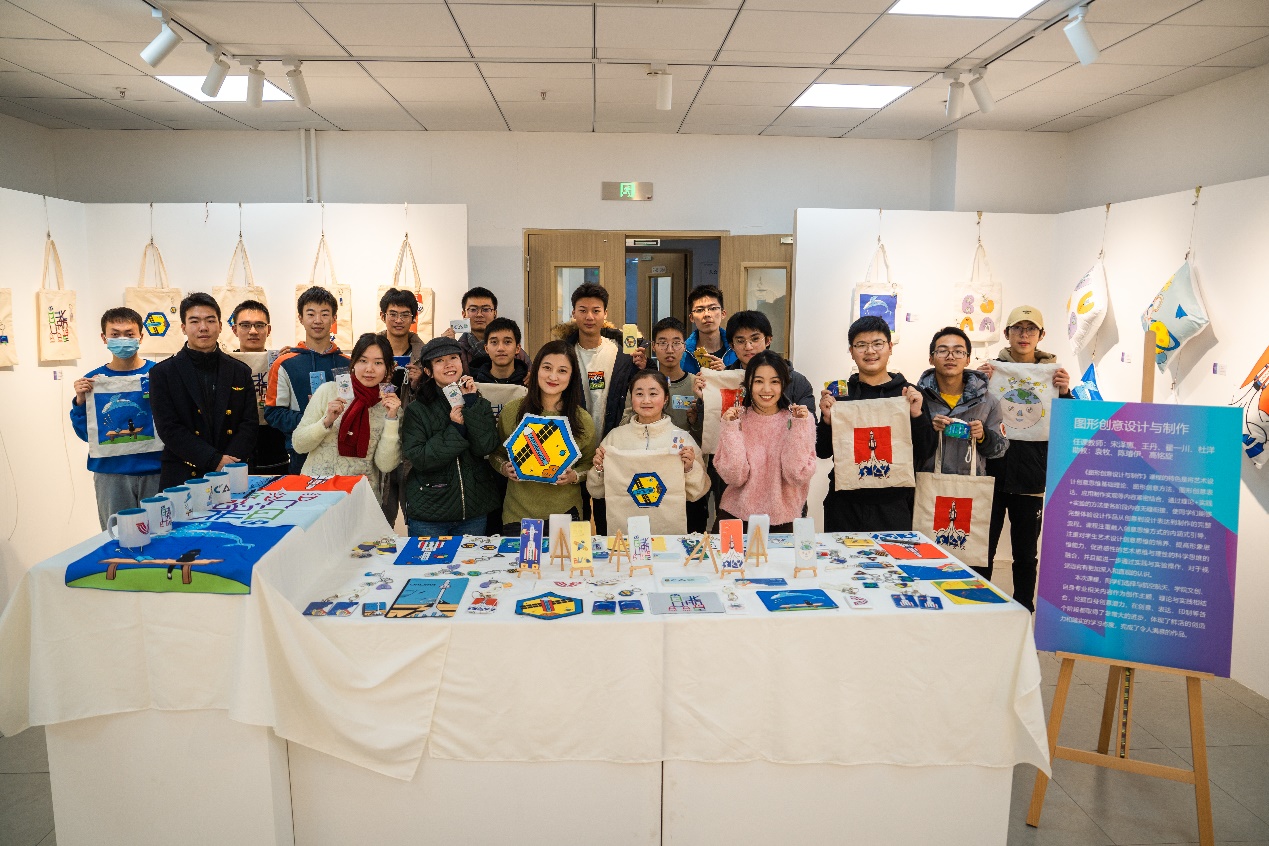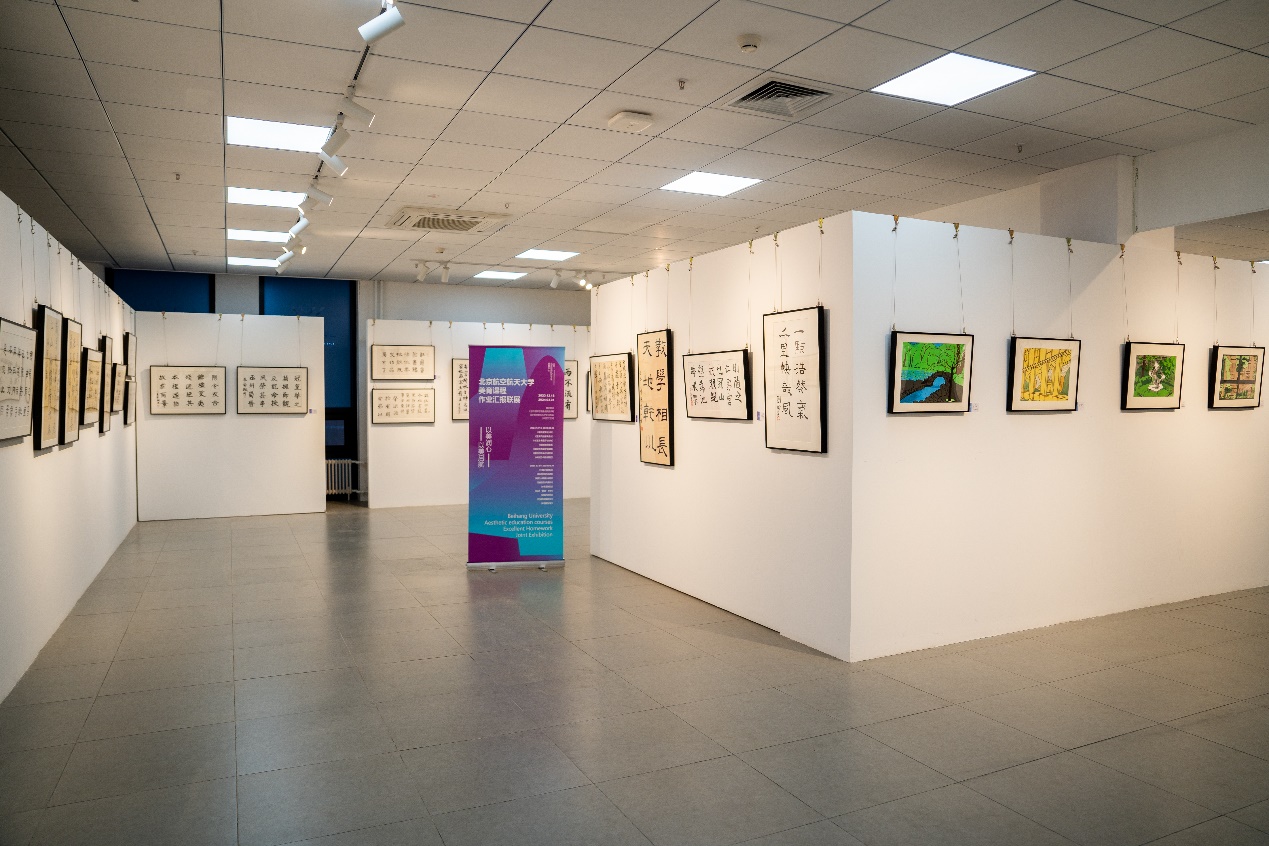 本次联展以“以美启航,以美润心”为主题,包括《书法艺术鉴赏与创作》、《中国水墨技法》、《图形创意设计与制作》、《丝网版画技法》、《空天产品美学设计》、《中外艺术设计简史》、《电影鉴赏与分析》、《摄影艺术鉴赏与基础》等课程,包含有绘画、丝网版画、海报、文创、摄影等类型作品,集中展示了三百余名学生的创作作品。
