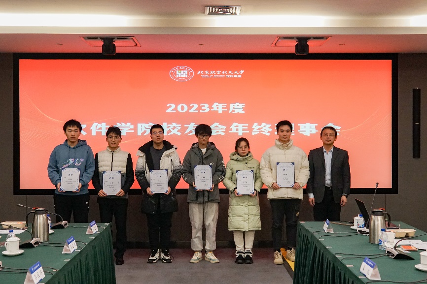软件学院院长胡春明对各位理事返回母校参会表示热烈的欢迎,也感谢各位理事对校友工作的积极参与和大力支持。孙铭涛秘书长作年度工作报告,详细回顾本年度软件学院校友会开展的重要工作,具体阐述校友会各项活动开展情况,同时也部署2024年校友会下一步重点工作计划。张理秘书长作关于软件学院2023年度财务报告,向各位理事汇报学院校友会的经费使用情况。汇报交流结束后,胡春明为校友联络员颁发聘书并合影留念。