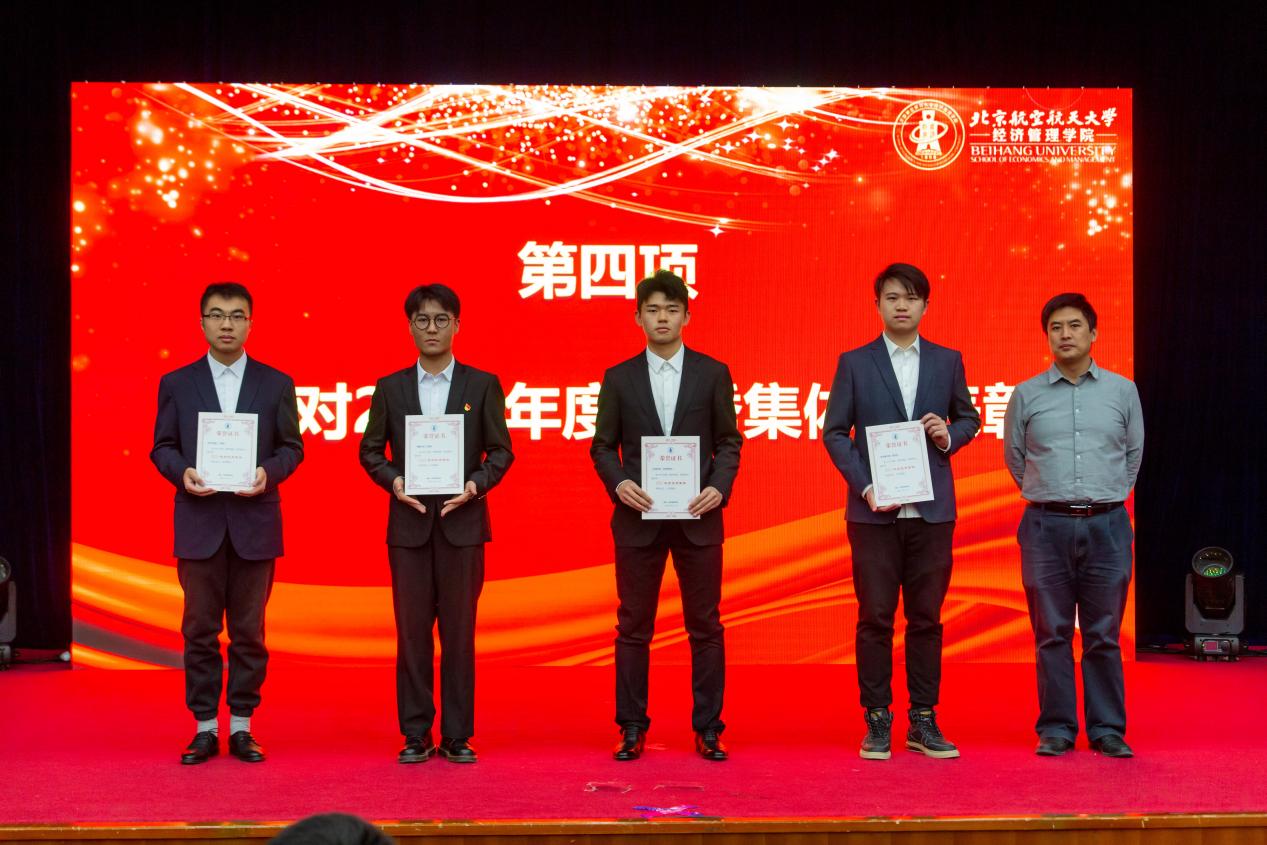 副院长郝金星宣读2023年经济管理学院优秀集体名单并为获奖集体颁奖,表彰学院各团队在学术研究、社会实践、文体活动等方面取得的骄人成绩。他们分别是:学院党员先锋队——“防金融诈骗”宣讲团、“经英悦动”体育服务队、“读懂中国”实践队、志愿服务队;中国大学生排球联赛季军——北航女子排球队;首都高校足球联赛季军——北航男子足球队;中国研究生企业管理创新大赛一等奖队伍——MBA-“创新探路者”队;北京市先进班集体——200816班;暑期社会实践校级一等奖——北航文博馆实践队;校级十佳宿舍——D5-402C宿舍;学院“经英启航”学生发展辅导中心——全体学生骨干团队。