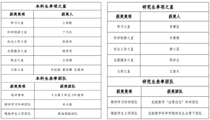 经“数学之星”评审委员会函评与学院内公示,王菲帆、丁天仪、李娜蕊、宋萌萌等13人获评单项之星,北航数学“运筹优化”团队等5支团队获评表率团队,29人获评优秀奖,8支团队获评优秀团队。