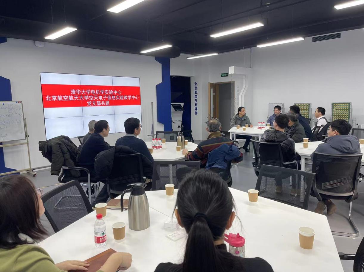 北航新闻网3月13日电(通讯员 陈鹏辉)为深入学习贯彻习近平新时代中国特色社会主义思想,以党建引领教学工作提质增效,2024年3月8日,北航电子学院实验教学中心教师党支部成员与来访的清华大学电机系实验教学中心与机关党支部成员开展了支部共建活动,两支部成员在支部建设、实验教学、人才培养、学生竞赛等方面进行深入探讨,并对下一阶段支部共建活动的内容进行了热烈的讨论。
