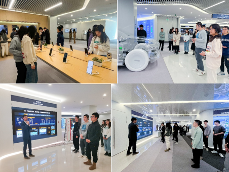 支部成员在华为北研所同志们的带领下,参观了华为北京会展中心。双方就华为在网联汽车、自动驾驶、数字能源、AI业务等方面技术展开了深入细致的交流讨论。当介绍到华为在智慧电力、智能矿山、智能制造、智慧医疗、智慧教育、城市运行指挥中心等方面的科技成果时,同学们踊跃提出问题,结合自身数学研究方向,向北研所的同志们进行请教与探讨,并得到一一解答。通过现场学习与交流提问,同学们了解了当前科技发展的最新成果,明晰了自身科研方向与发展路径,更加坚定了服务高水平科技自立自强的信心决心。