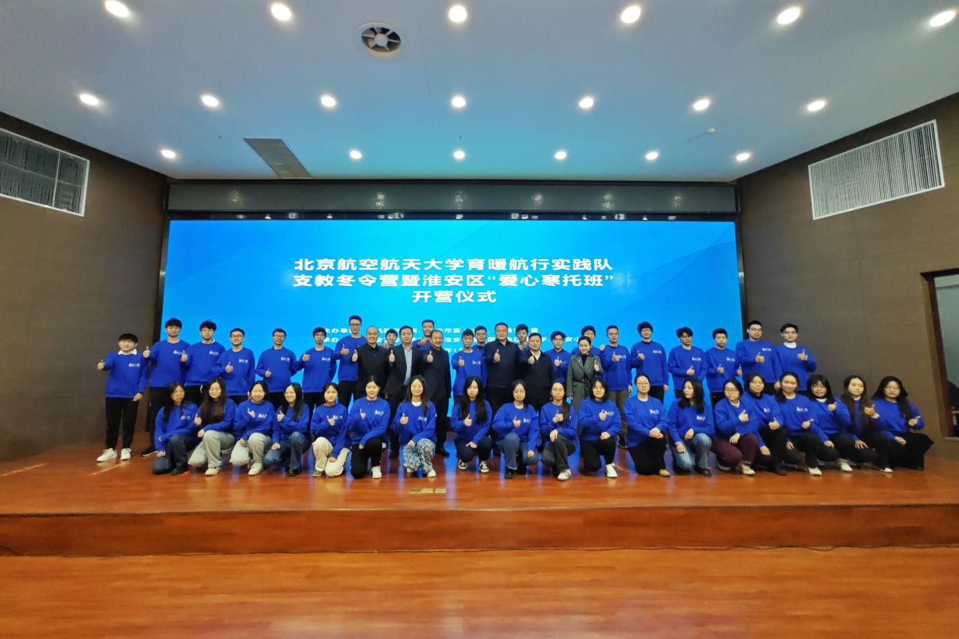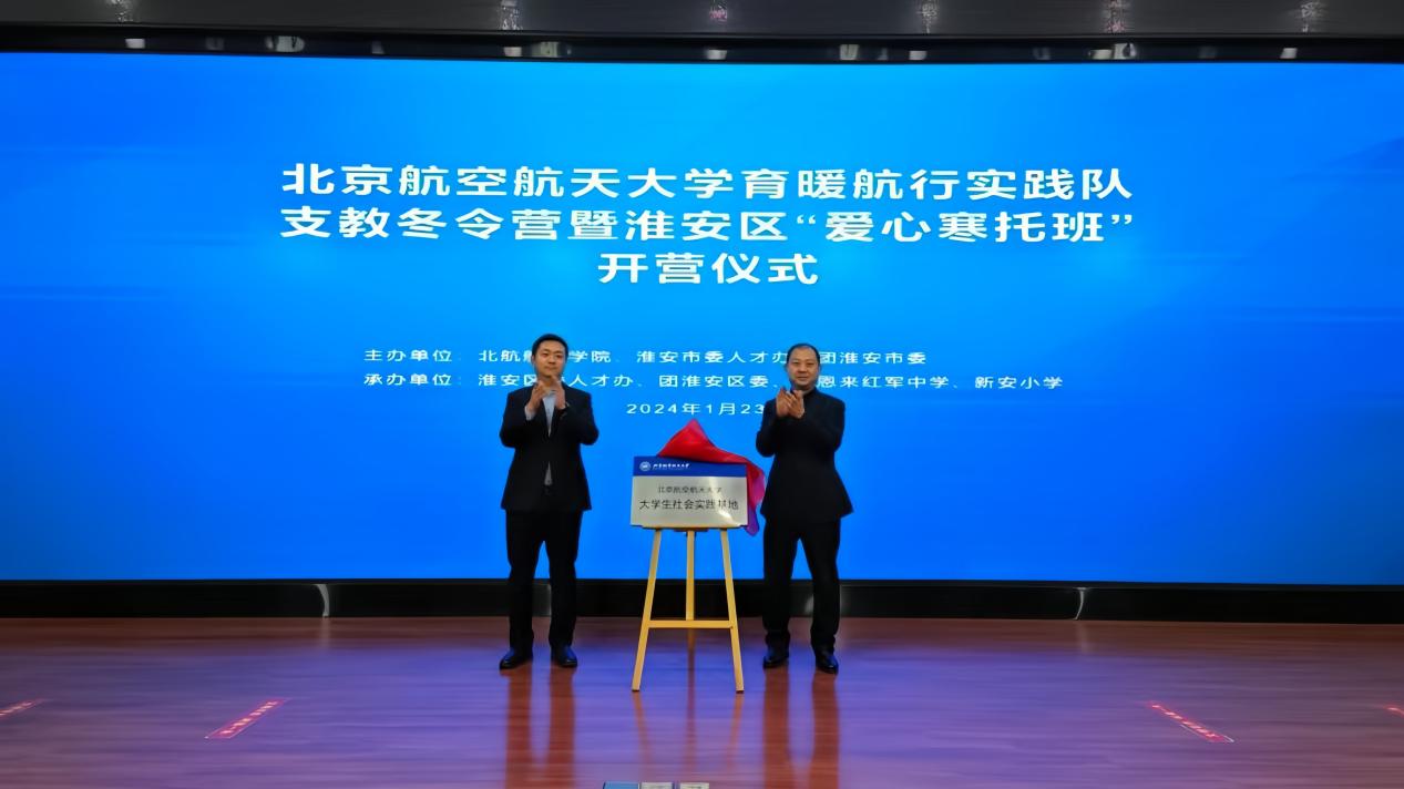 北航新闻网3月18日电(通讯员 蒋俊林 张加显)2024年寒假,北航育暖航行实践队40名队员来到了有着“运河之都”美誉的江苏省淮安市,在淮安市委组织部、淮安区委组织部、淮安区教育局、淮安区团委、北航校团委、北航航空学院等的大力支持下,组织一百余名淮安市周恩来红军中学、淮安市新安小学的学生开展为期8天的趣味科普冬令营活动。同期,实践队还组织前往周恩来纪念馆、中国漕运博物馆、扬州市江都水利枢纽等具有特殊意义的场所进行调研走访,进一步挖掘饮水思源的深刻内涵,激发新时代大学生积极投身强国建设。