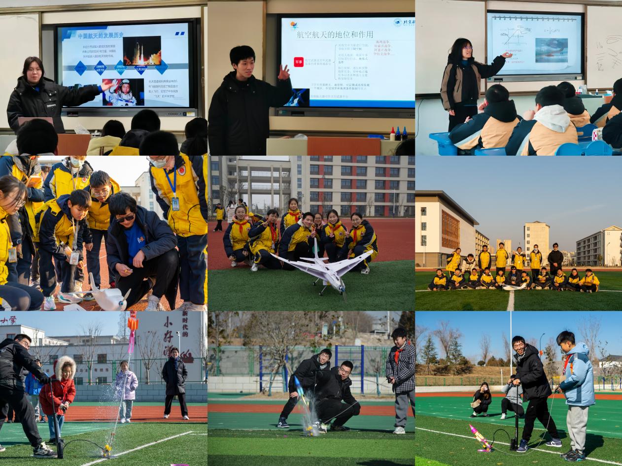 本次冬令营活动,实践队在以往的工作基础上,从中国为什么要发展航空航天出发,进行空天知识科普,推出动手实践模块,以生动系统的教学形式带领学生体验自主设计制作航模、水火箭全过程,为孩子们种下一颗颗逐梦空天的种子,给他们点上热爱航空航天的星星之火。