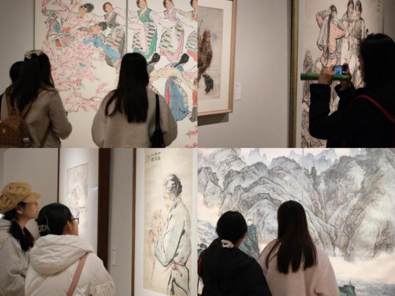 本次展览由全国15家美术馆联合承办,以各地美术馆的馆藏精品叙述中国的故事、春天的故事——美的故事。展览作品形式丰富,各显其美,展现了新时代以来美术馆事业繁荣发展的良好局面,为大家奉上一场高品质美术文化盛宴。本次展览的展出作品充分体现了各地美术馆的代表性收藏成果和突出的地域美术特色,充分展现了各馆典藏特色和研究策划成果。同学们在一件件作品前时而驻足观望、时而拍照留念,通过品读艺术作品中的画家情感和艺术智慧,感受画作中的中国气派和时代风光,尽情享受本次艺术文化盛宴。