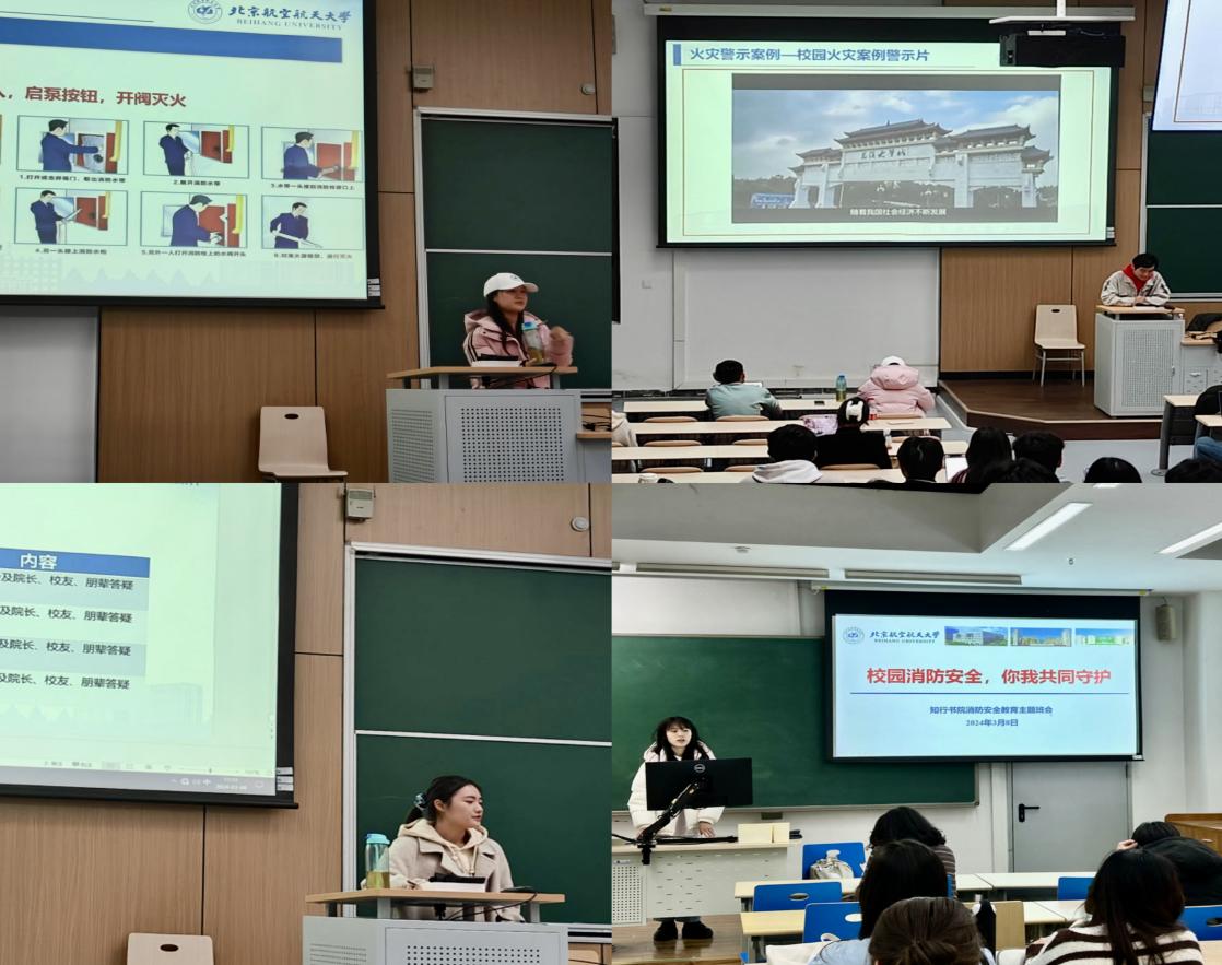 北航新闻网3月20日电(通讯员 刘储睿 陈馨怡)为提高学生安全意识,培养正确应对火灾事故的能力,3月8日下午,知行书院开展消防安全教育主题班会。知行书院辅导员及全体本科生参与本次班会。