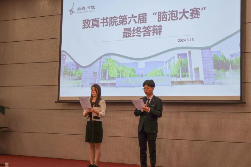 主持人致辞之后答辩正式开始。各组选手依次上台展示自己严谨硬核的内容和大胆科创的思想,展示出致真学子应有的理性分析和人文关怀,也展示了一名科研人应有的创新思维和科研能力。每组选手答辩过后评委和嘉宾发出提问,指出尚存的问题和不足,给出专业的意见和建议,并对每一位选手的出彩之处给予了充分的肯定。