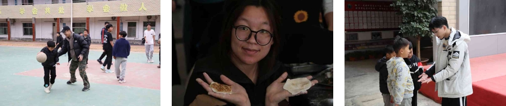 陪伴是最长情的告白。课余时间校园里充满了队员们和孩子们的欢笑声,在广东,孩子们向队员们发起“挑战”,在篮球、乒乓球、跑步多个项目种展开“角逐”,在笑声中“大战”三百回合未分胜负。在河北,大家欢聚一堂,一场盛大的师生联欢活动热烈上演,午饭期间,队员们携手老师家长为还在上课的孩子们包一顿饺子,把暖包进饺子、把爱捏出形状。