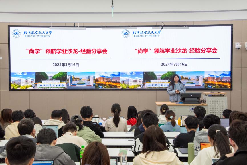 北航新闻网3月28日电(通讯员 张舒怡 朱帅东/文 孟克胡尔茨/摄影)为扎实推进学业支持引导,引导学生提前做好升学规划,熟悉了解保研夏令营及出国交流相关备考经验,经济管理学院于2024年3月16日下午组织开展2024春季学期“尚学”领航学业沙龙-经验分享会。本次分享会特邀请学院大四学生为同学们带来个人在申报国内夏令营及国外院校的相关准备经验,近百名学生参与本次学业沙龙。