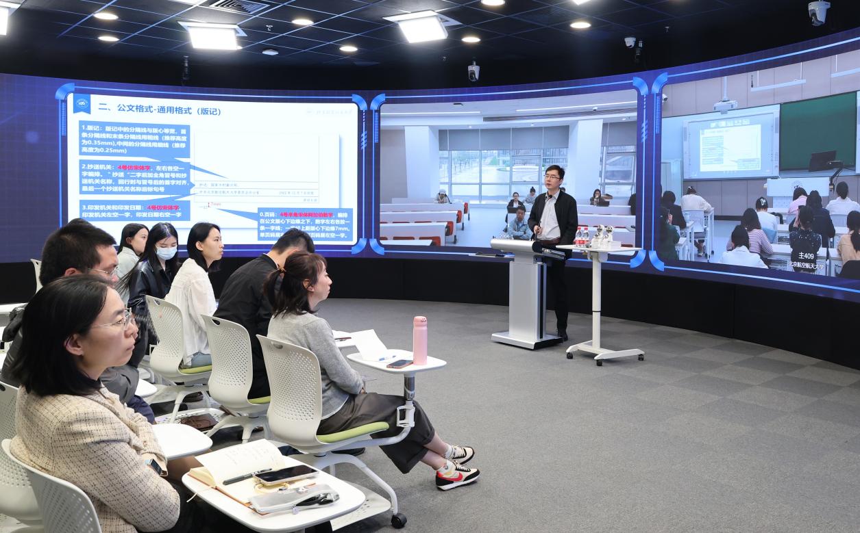 北航新闻网4月24日电(通讯员 朱蕊寒/文 韩淼/摄影)4月23日上午,学校青年教职工管理业务培训基础班的培训活动持续开展。机关党委、教师发展中心联合邀请党政办公室机要室主任桑济昌、网络信息中心副主任周林志分别作公文写作能力、数字化赋能专题培训。教师发展中心主任李红捷主持。