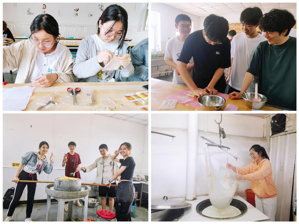接下来,同学们参加了丰富多彩的劳动实践课程,大家共同学习传统手工布艺,制作石磨豆腐、鲜花饼。在学习传统布艺环节中,老师绘声绘色地向同学们介绍了布艺制作的历史与技艺,边讲边示范。同学们通过裁剪、缝合、填充等步骤,做成了各式各样的布艺钱包。在制作豆腐和鲜花饼的环节中,同学们展现了巧妙的手工技艺和创造力,不仅学习了传统文化,也在动手实践中感受到了劳动的美好。整个活动过程,同学们互相协作,共同完成任务,氛围欢快而和谐。