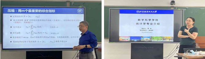 学院统计学学科带头人陈迪荣教授以“降秩降维之利器:主成分分析”为题,向同学们介绍了数学基础课程在统计中的应用和主成分分析法在图像压缩、文本语义分析、社交网络分析等多个领域的实际应用。统计与运筹系系主任罗雪向同学们介绍了学院统计与运筹学系的发展历程,同时介绍了统计学方向的必修课程及其特点以及各位教师的研究方向,鼓励同学们主动联系导师,培养学科视野和专业兴趣。