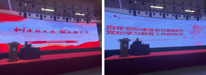 期间,两院党委共同举办了党委联合学习活动。北航新媒体艺术与设计学院党委书记王群进行了题为“树廉政风尚,做合格党员”的廉政教育专题讲座,并对《中国共产党纪律处分条例》进行了深入解读。辽宁科技大学建筑与艺术设计学院党委书记王湃则以“百年党纪建设史对新时代党纪学习教育工作的启示”为主题作党课讲授。两位书记的党课内容深入浅出,数据详实,内容丰富,对与会师生党员产生了深远的影响。