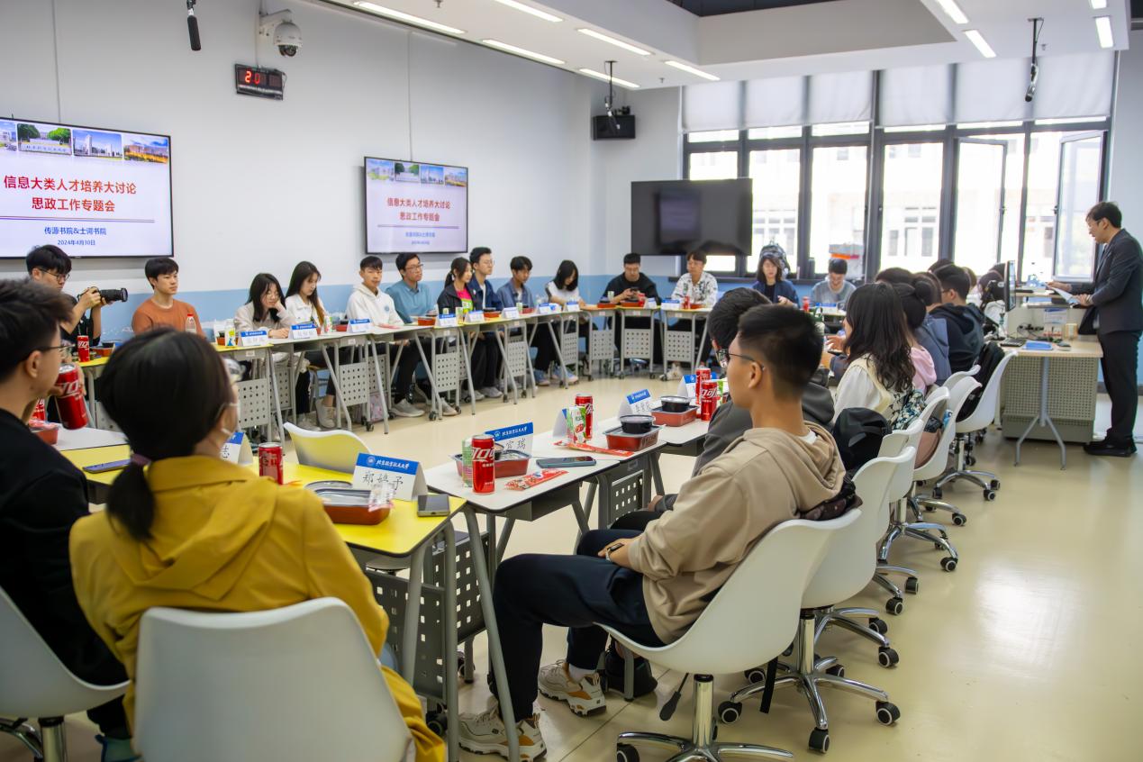 北航新闻网5月20日电(通讯员 邹雨初 丁赫/文 张博 赵金昊/摄影)为进一步落实人才培养各项重点举措,传源书院、士谔书院于4月30日中午12点在沙河校区J1-103,联合召开人才培养大讨论思政工作专题会。两书院执行团全体成员、各大班学生骨干代表共同参与。座谈交流主题涵盖信息大类书院同学们日常学习生活方方面面,并和思政教育充分融合。
