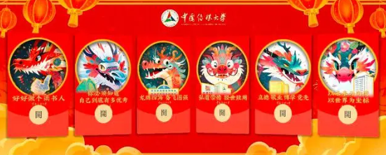 点击北工大的红包,就能看到该校吉祥物“燕小北”佩戴龙年头饰,张开双翅奉上新年红包。传媒大学红包封面则科技感满满,该校动画与数字技术学院副教授王漪团队运用生成式人工智能技术,将龙的形象与该校标志性建筑物融合,送祝福的同时,希望学生立德、敬业、博学、竞先。