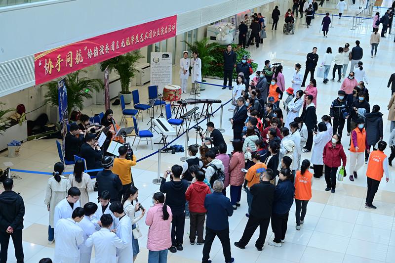3月29日,优美的乐声回荡在北京协和医院东单院区繁忙的门诊大厅里。来自北京航空航天大学学生艺术团弦乐四重奏团的学生们联手协和协韵演奏团共同为患者、家属和医务工作者带来了“协手同航”协韵演奏团联合北航学生艺术团公益演出活动。校团委书记刘洋,副书记赵圆和北航学生艺术团学生代表参加活动。